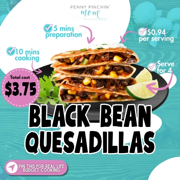 One can black beans ($0.89), 8 flour tortillas ($1.50), 2 cups shredded cheese ($1.36). Mash half the beans, leave the rest whole, mix with cheese, fold into tortillas, and pan-fry until crispy. Budget-friendly because beans provide filling protein for under a dollar and cheese makes it feel indulgent. Add leftover rice or corn to stretch it further and boost nutrition without raising the cost.